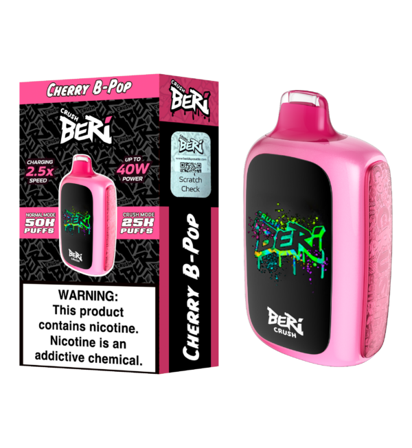 The Beri Crush 50K is designed to deliver a premium experience that is both simple and satisfying. The device feels sturdy and comfortable to hold, making it an excellent choice for everyday use. We engineered it to provide consistent performance that brings out the best in every flavor. With the Cherry B Pop Beri Crush 50K, you get a smooth, flavorful vapor that is sweet, satisfying, and reliably delicious from your first puff to the last.