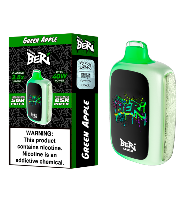 For moments when you want to amplify the flavor, Crush Mode is at your fingertips. Activating this feature provides a surge of power, intensifying the taste and producing thicker vapor clouds. With the Green Apple Beri Crush 50K, Crush Mode enhances the sharp, tangy notes, making the flavor even more vibrant and exhilarating. This dual functionality gives you the freedom to customize your vape experience on demand.